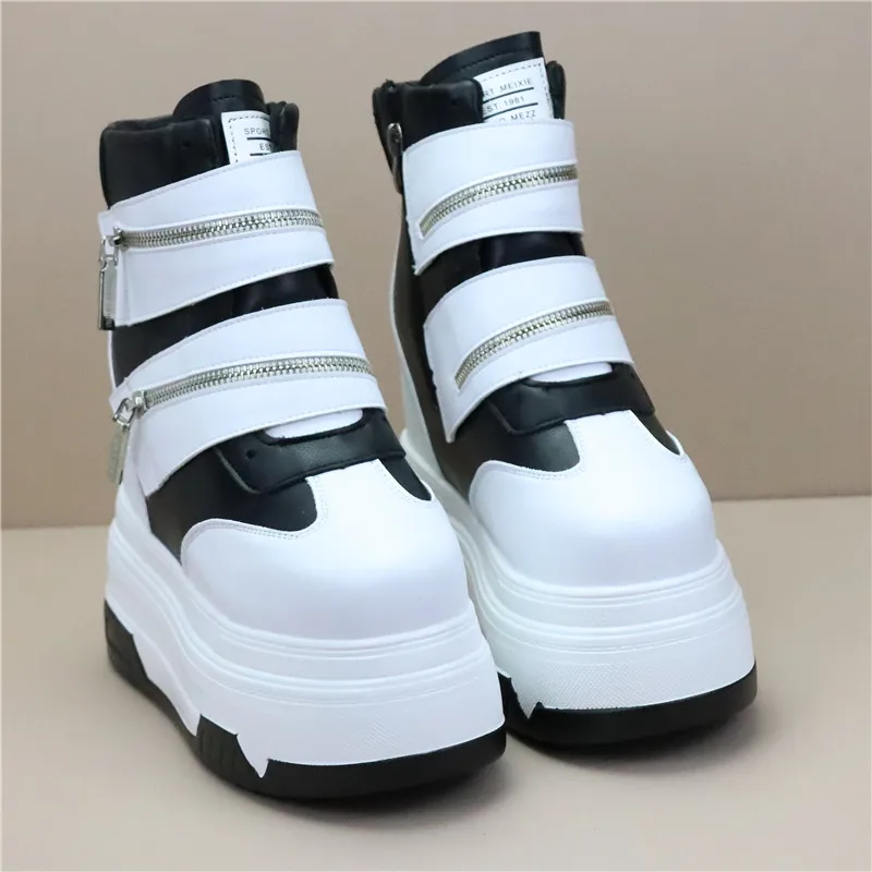 15cm Spring Autumn Women High Top Sneakers Breathable Thick Sole Chunky Sneakers Ankle Boots Platform Booties Wedge Boots White