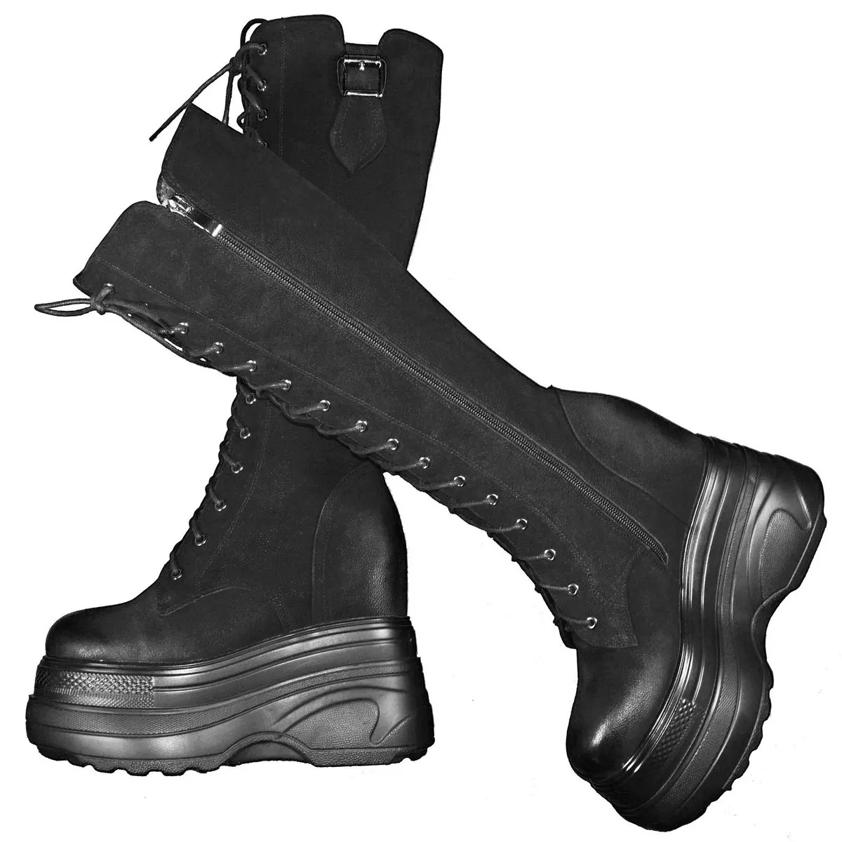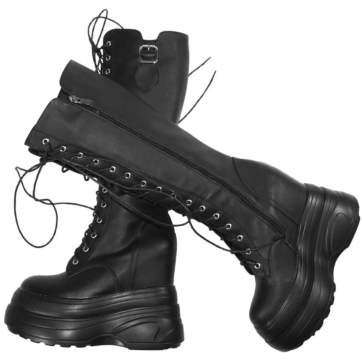 16cm High Heel Pumps Plus Size 43 44 45 46 47 Shoes Women Cow Leather Wedges Vulcanized Shoes Female Round Toe Fashion Sneakers