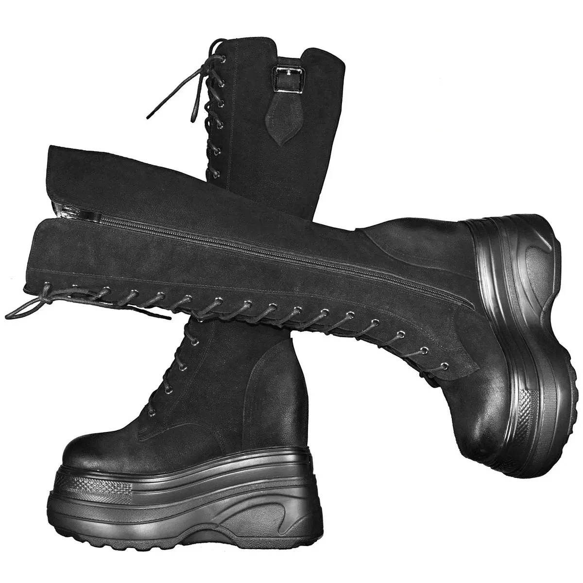 16cm High Heel Pumps Plus Size 43 44 45 46 47 Shoes Women Cow Leather Wedges Vulcanized Shoes Female Round Toe Fashion Sneakers NNOS