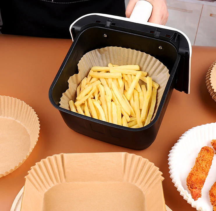 50Pcs Disposable Air Fryer Baking Paper Non-Stick Mat Oil Absorbing Kitchen Oven BBQ Plate Round/Square Fabric for Easy Cooking