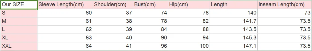 size_info: {"sizeInfoList":[{"length":{"cm":"140","inch":"55.12"},"size":"S","vid":100014064},{"length":{"cm":"142","inch":"55.91"},"size":"M","vid":361386},{"length":{"cm":"144","inch":"56.69"},"size":"L","vid":361385},{"length":{"cm":"145","inch":"57.09"},"size":"XL","vid":100014065},{"length":{"cm":"147","inch":"57.87"},"size":"XXL","vid":4182}]}