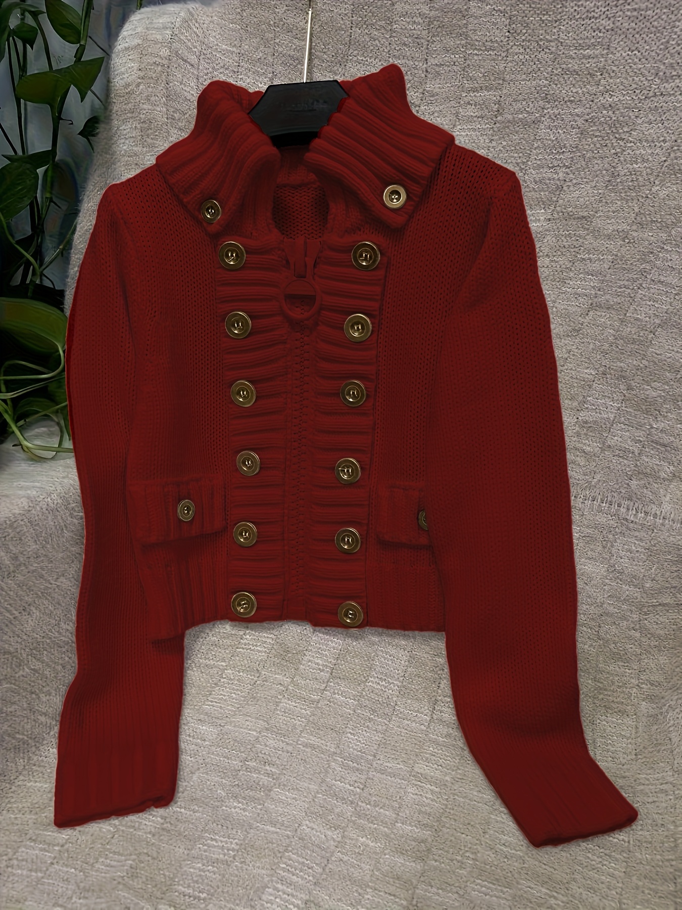 Multi-button decorated large zipper stand-up collar slim-fit cardigan
