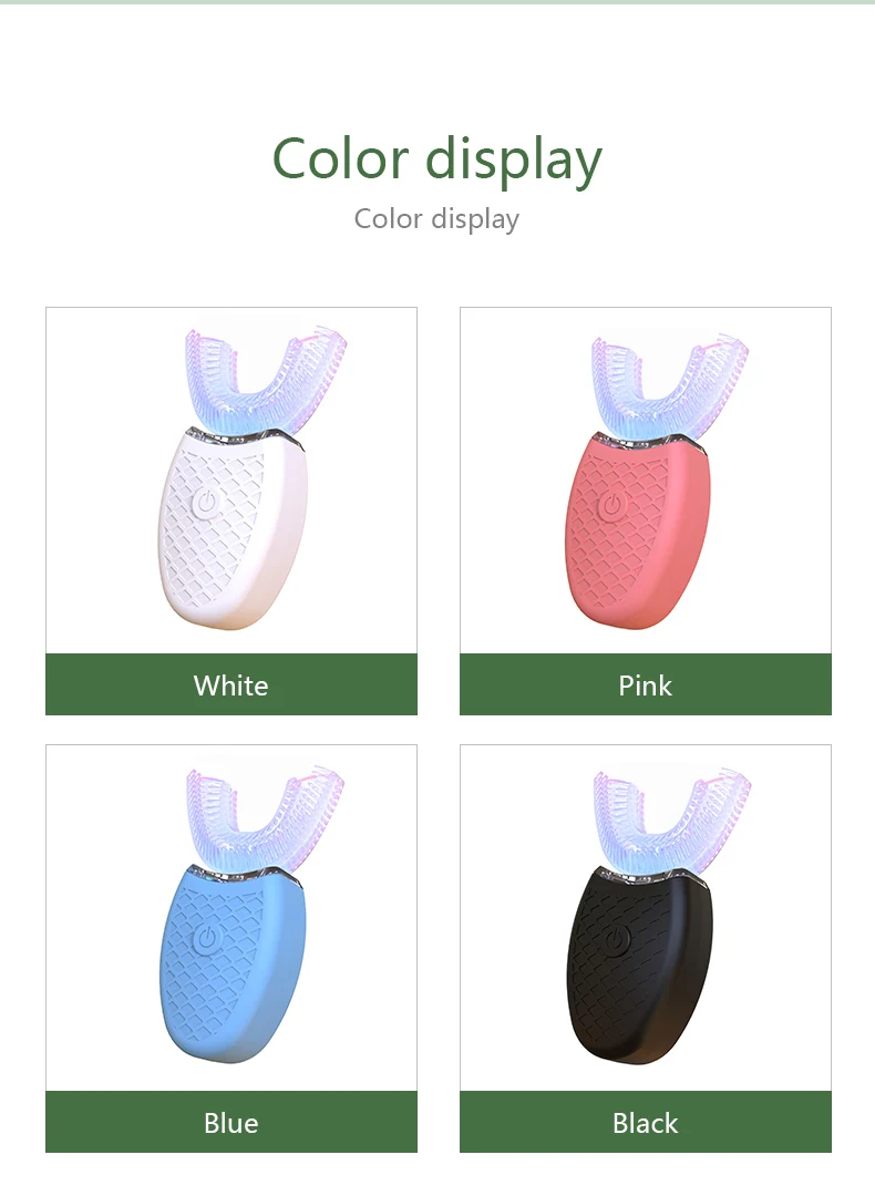 The NNOS U Shaped Electric Toothbrush features advanced 360-degree cleaning that reaches every surface of your teeth simultaneously. The food-grade silicone bristles are gentle yet effective, ideal for sensitive gums. Its USB rechargeable battery offers long-lasting performance, while the waterproof design allows easy rinsing after use. Whether at home or traveling, the U Shaped Electric Toothbrush ensures hygienic, effortless brushing with minimal effort.