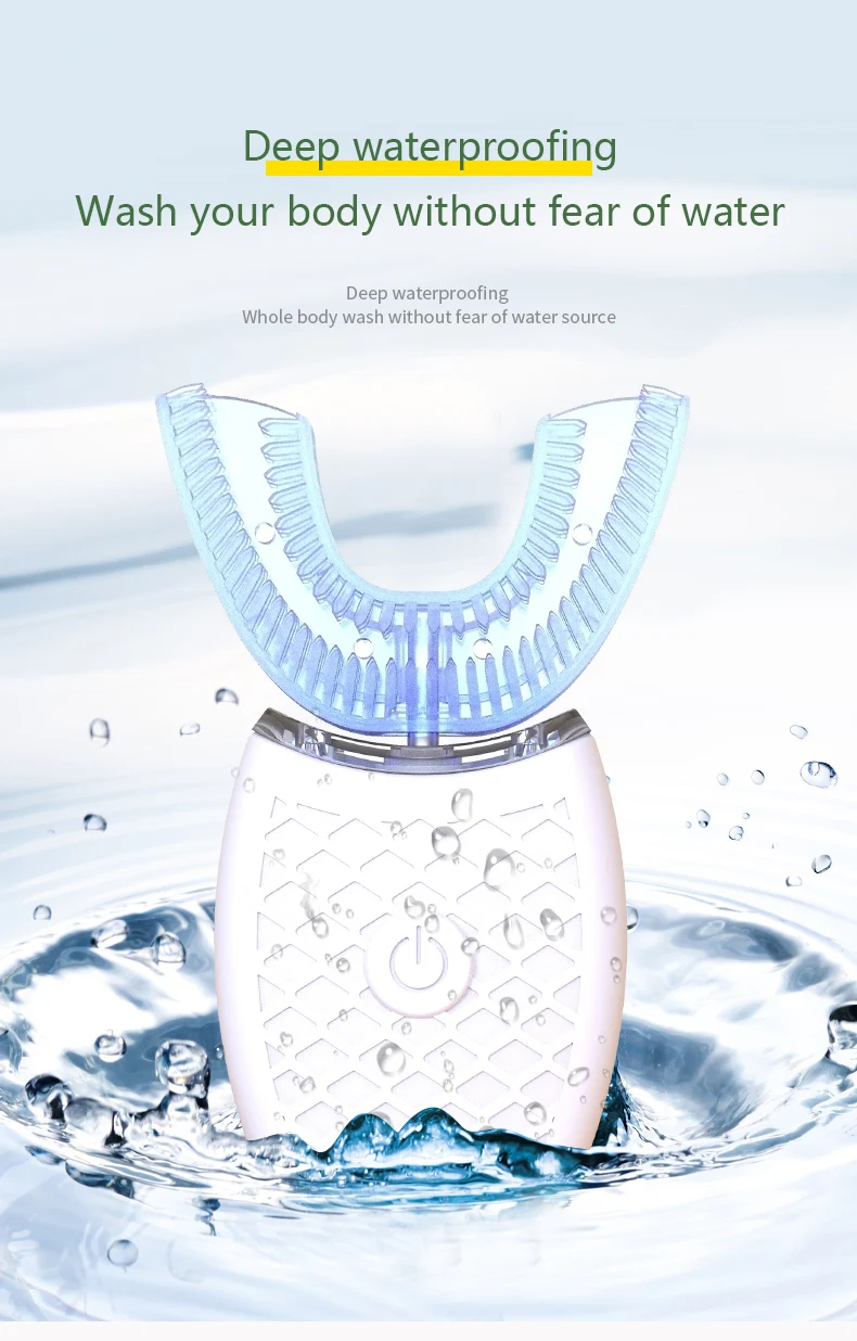 U Shaped Electric Toothbrush 360° Cleaning Silicone Brush USB Rechargeable
