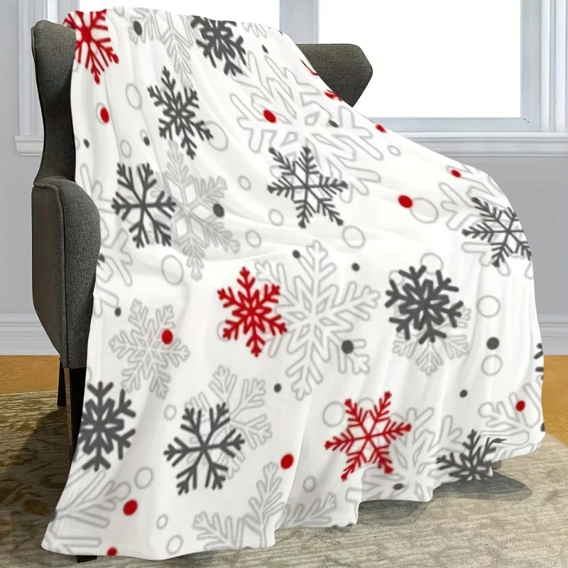 Ultra-Soft Flannel Christmas Throw Blanket - Snowflake Design, Perfect for Sofa,Bed,Office&Camping All-Season Cozy Plush Warmth