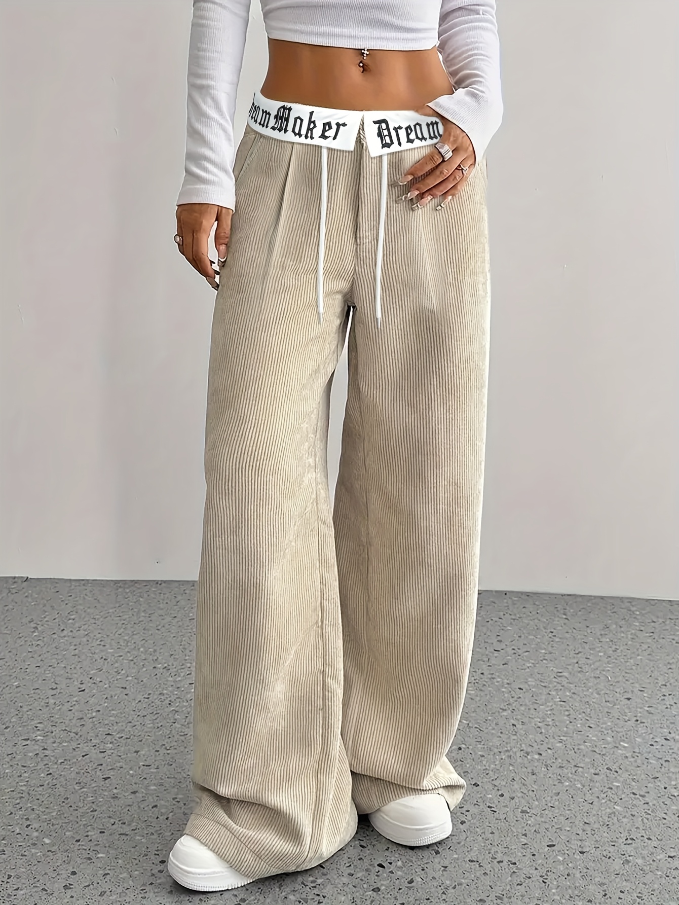Women’s Gray Wide-Leg Sweatpants – Vintage Y2K Streetwear with Embroidery