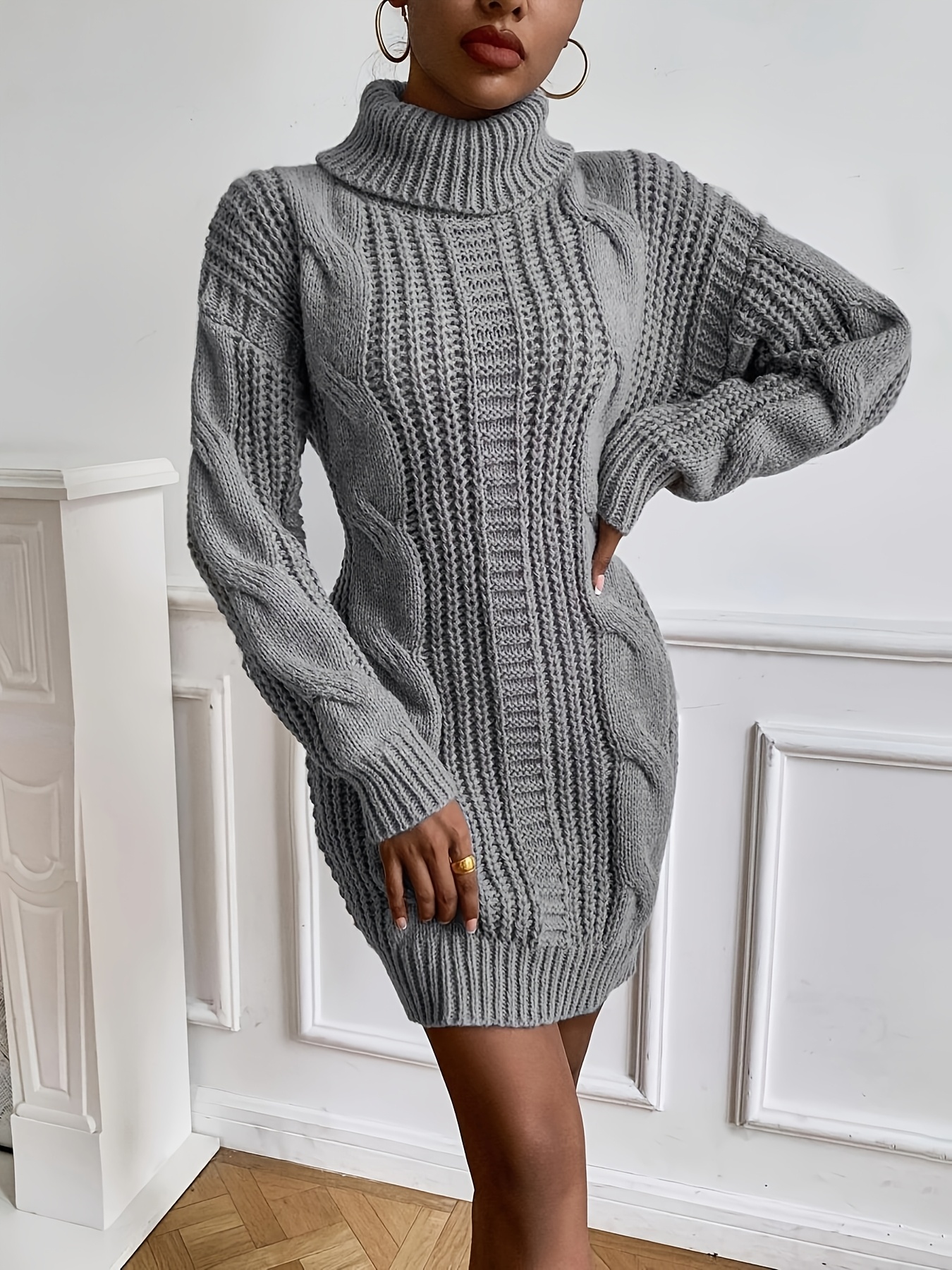 Women’s High Neck Turtleneck Sweater Dress – Elegant Bodycon Mid-Length