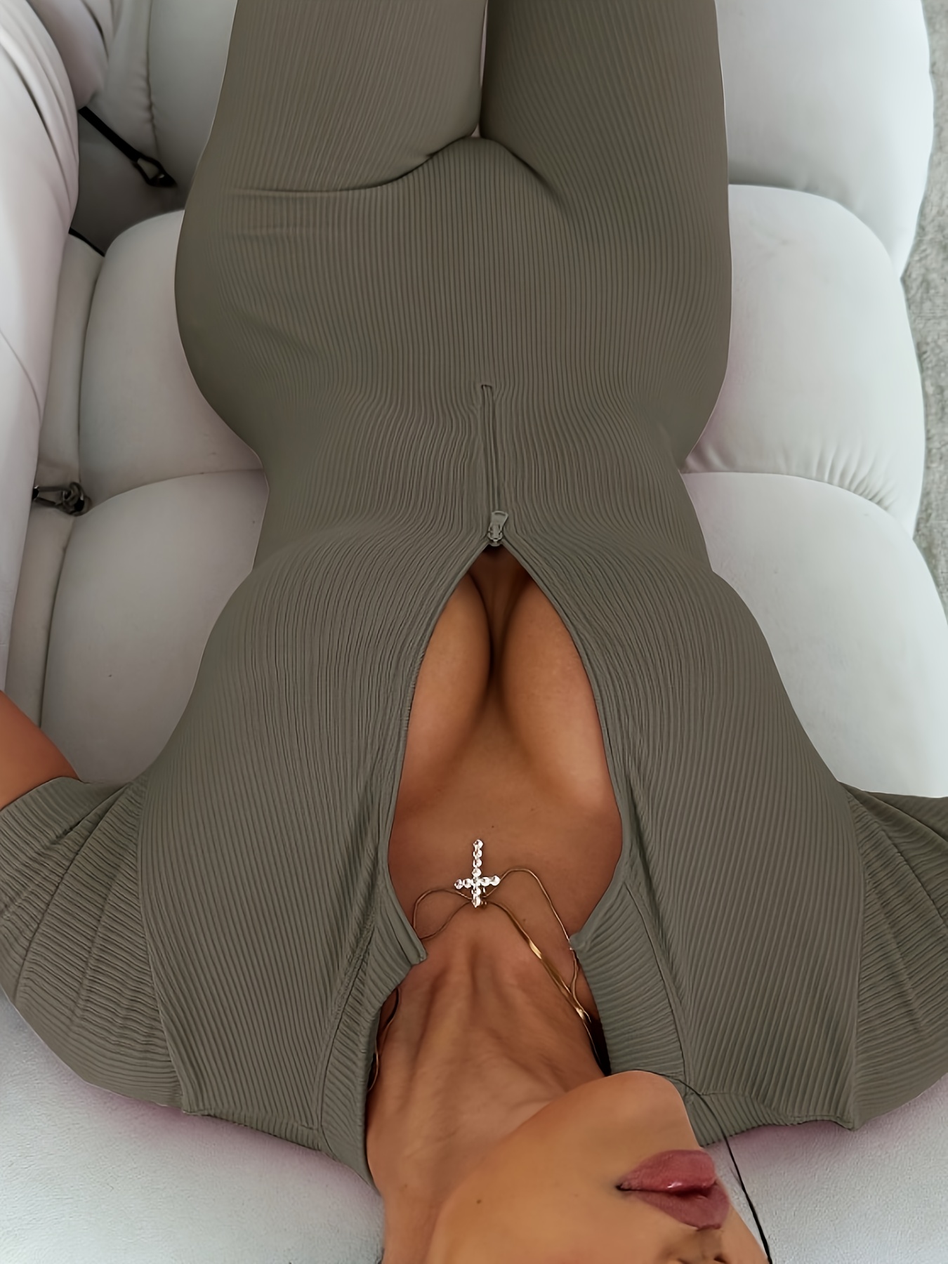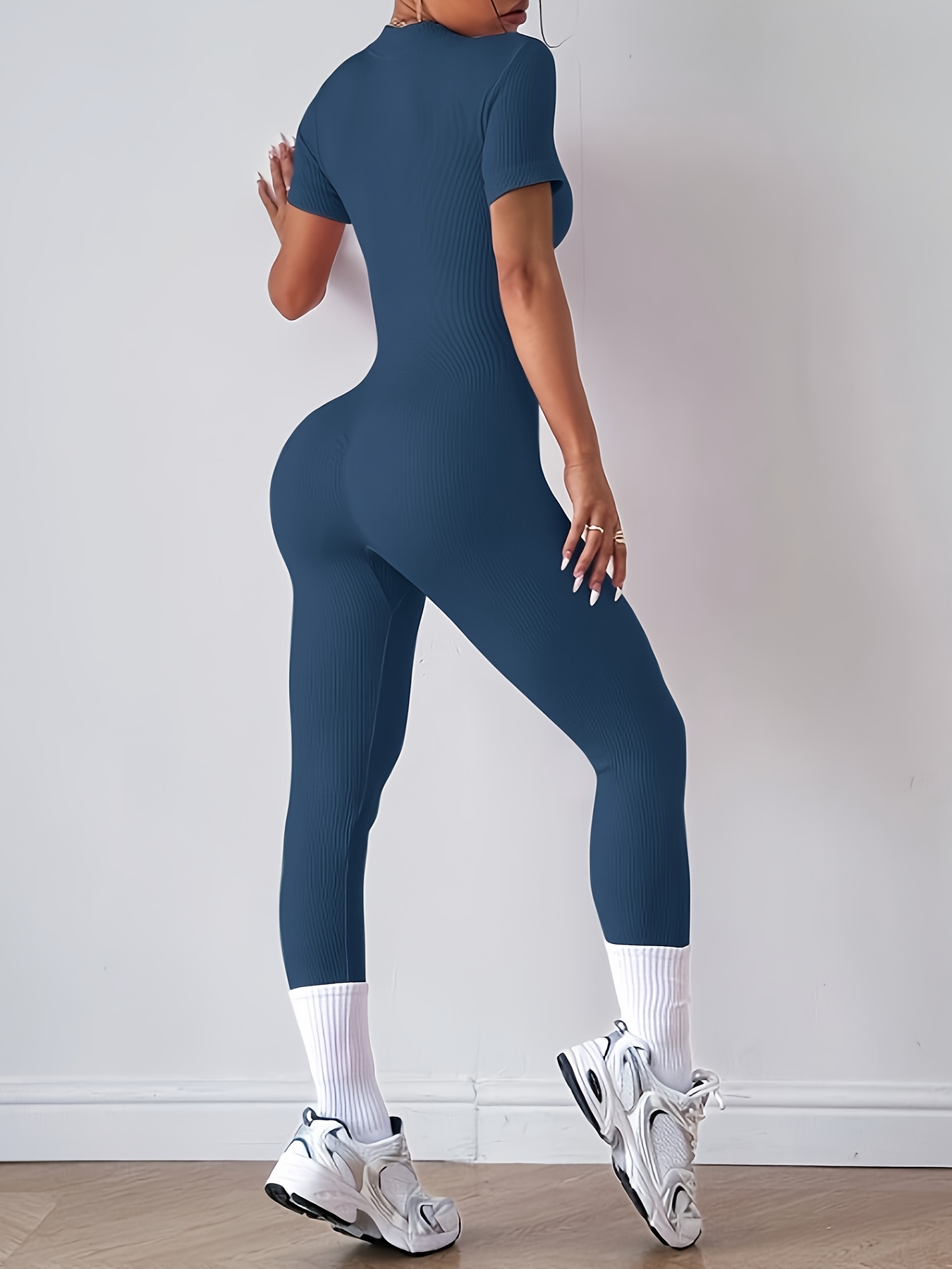 Women’s High-Waist Yoga Onesie – Stretchy Zipper Athletic Jumpsuit Activewear