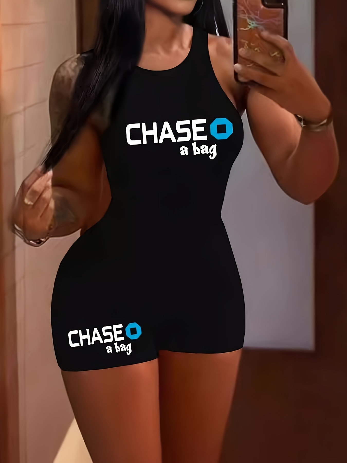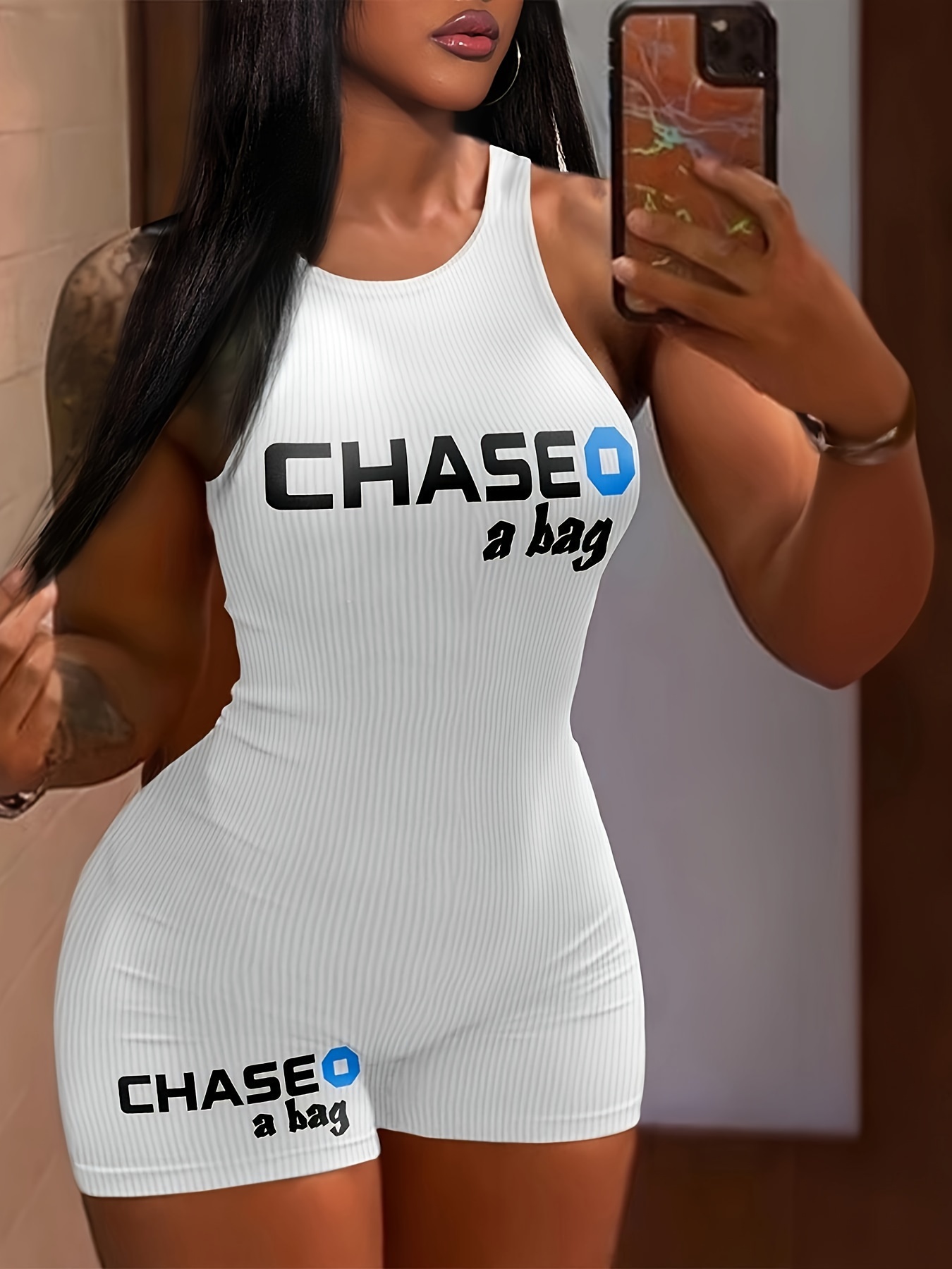 Women’s Sexy Bodycon Jumpsuit – Sleeveless Crop Top Style with Print