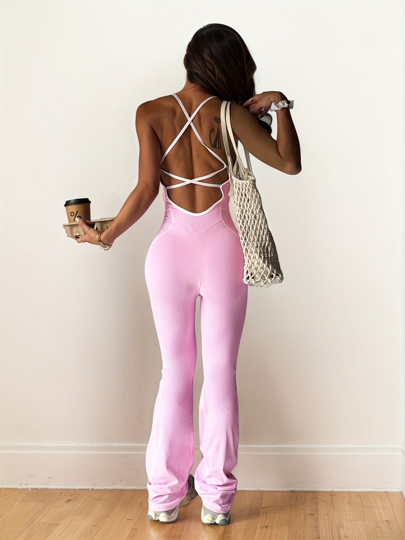 Women’s Sexy Sports Jumpsuit – Cross-Back Wide-Leg Fit for Yoga & Workouts NNOS